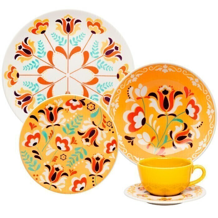 O estilo nórdico, conhecido em todo o mundo, é marcado pelo minimalismo. O nome e o formato das peças do modelo Unni, palavra islandesa que significa “amado”, buscaram como inspiração a simplicidade e a funcionalidade, sem perder a elegância. Com peças em formato mais clean e discretas, o destaque, no entanto, é o prato fundo que possui capacidade para 820 ml, ideal para servir sopas e cremes. Inspirada nas tradições folclóricas polonesas, a coleção Unni Flowers é alegre e suas cores resgatam a cultura e a energia deste povo. A xícara que compõe a coleção, esmaltada em cor sólida, dá um toque mais contemporâneo à louça.